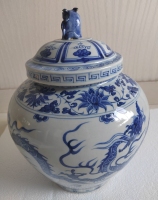 清代青花人物故事盖罐