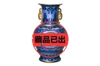 清乾隆蓝地青花描金转心瓶