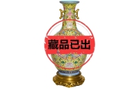 清乾隆黄地洋彩穿花夔凤纹双耳瓶