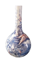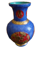 蓝地轧道开光描金“福禄寿”赏瓶(漆器)